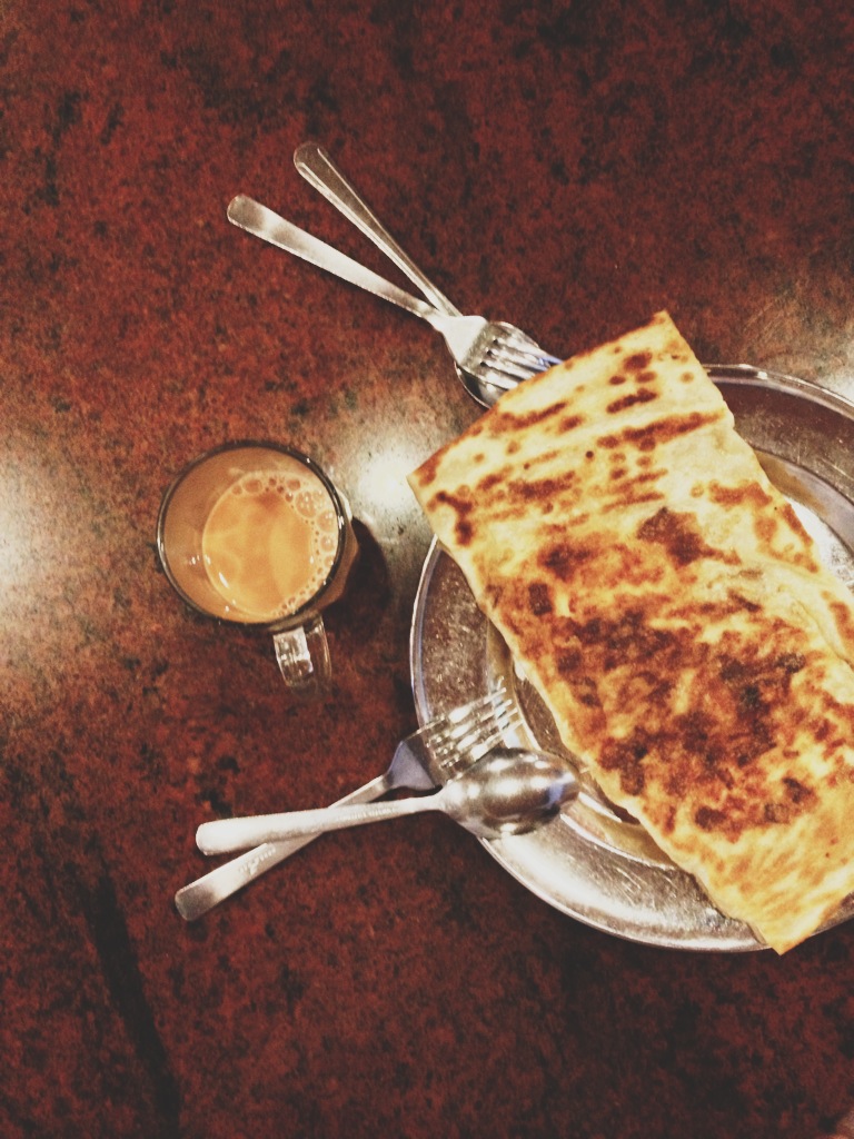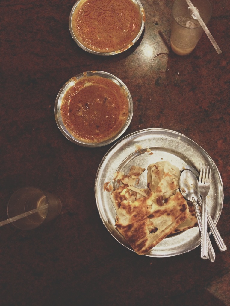 Us three girls shared chocolate and onion cheese pratas. Clearly, the one above is the wafer-thin, crackly, chocolate neighbour of the tissue paper. I enjoy sitting back and admiring the view of the menu, mentally taking in all the possible cheese/egg/onion/banana (and other such) combinations which these lovely Indian fellows came up with. i can almost imagine them designing the layout and choice of words, throwing connectives such as ‘and’ between words such as ‘mushroom’ and ‘cheese’ out the window to give straightforward and authentic sounding gorge lists. We decided upon those specific two to provide some taste variety; they nicely ticked the savoury and sweet boxes. The only heart-breaking thing, unfortunately, is that they don’t use real melted chocolate. Chocolate tissue paper never was their specialty, lets get straight to it. These guys are famed for their fish head curry, prata, murtabak and thosai, not flimsy, left-of-field inventions to add some chimerical distraction for the children who hopped by with their parents. Clearly it’s Hershey’s Artificial Chocolate Syrup, however the texture is still there, the paper-like consistency still in tact. The texture and infallibility is what I’d be happy to rave about, and not much else.