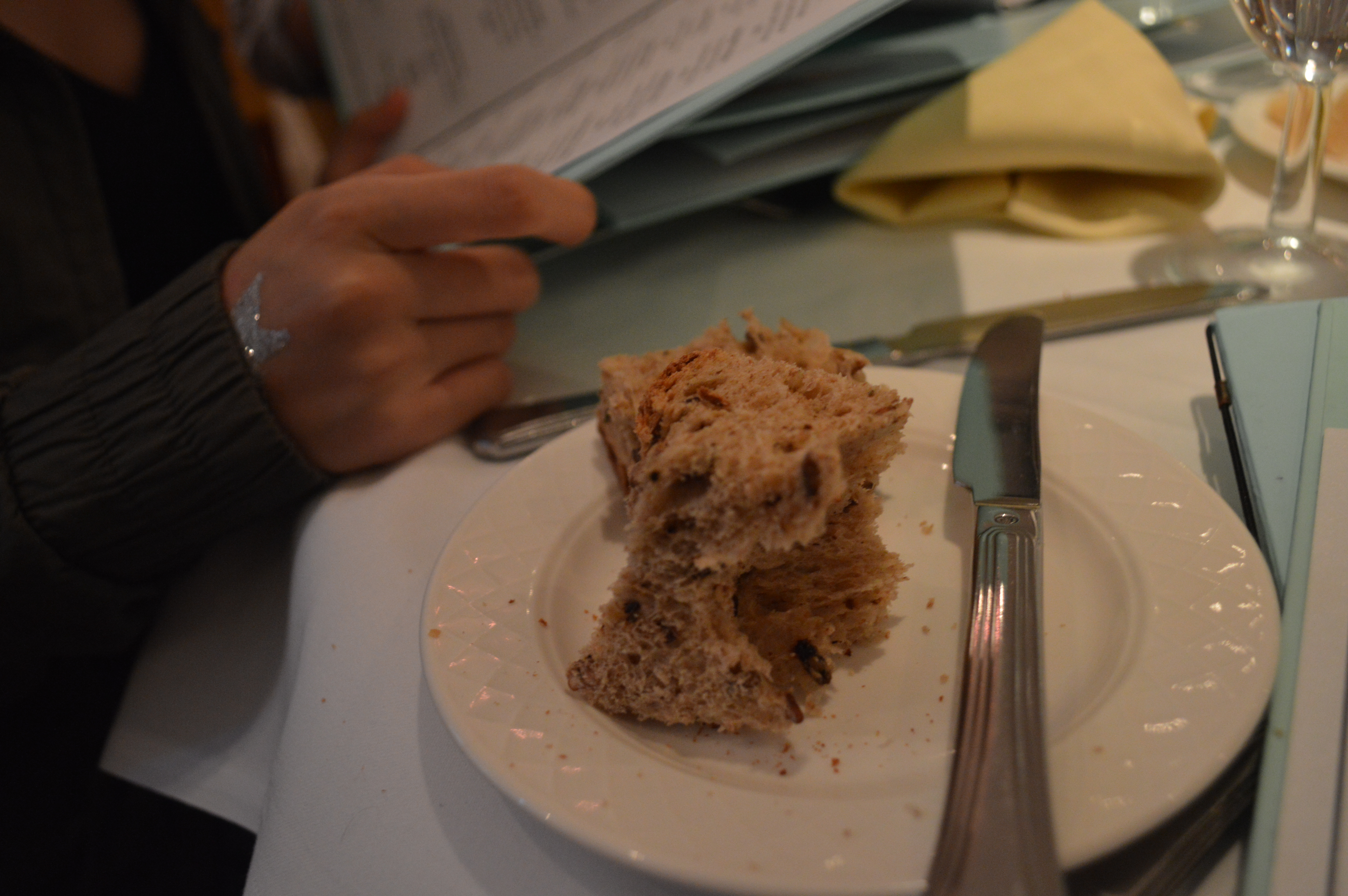We started off with some cheese, bread and olives. They come to you with a cloth-covered basket filled with an assortment of crusty, freshly baked breads. I chose a dark rye type, and the parmesan was like briny crystals of heaven.