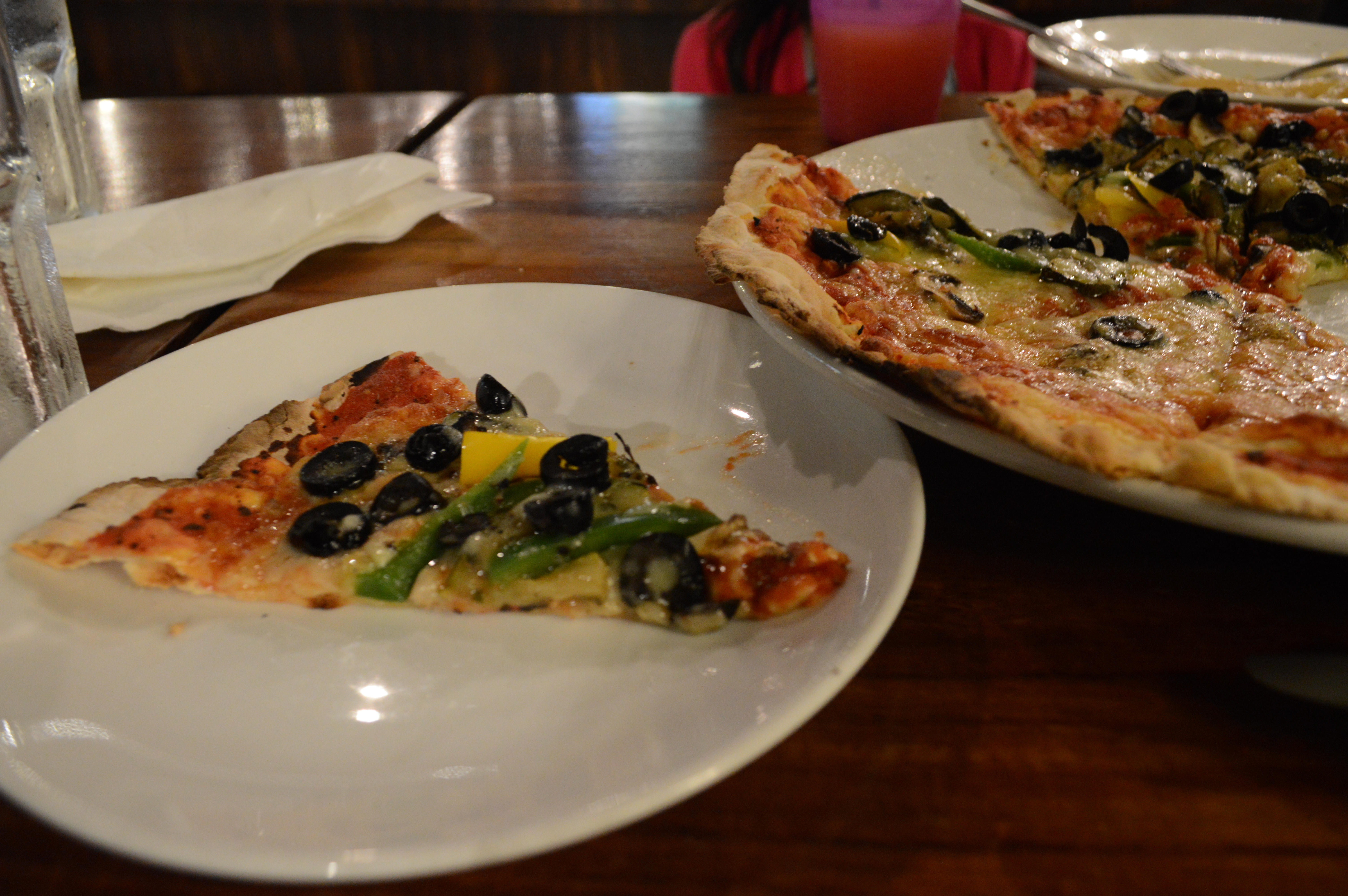Good news. You get to customise your pizza. 2 flavours. One pan. Bring it. We chose half to be vegetarian, with olives, capsicum and mushrooms, and the other to be capoeira, a combination of 4 cheeses (mozzarella, parmesan, gorgonzola and cheddar). The flavours exploded on the emaciated crust, which was lovely albeit the fragile base. A stronger support would be nice. And I may extrapolate this in real life. My life. Actually.