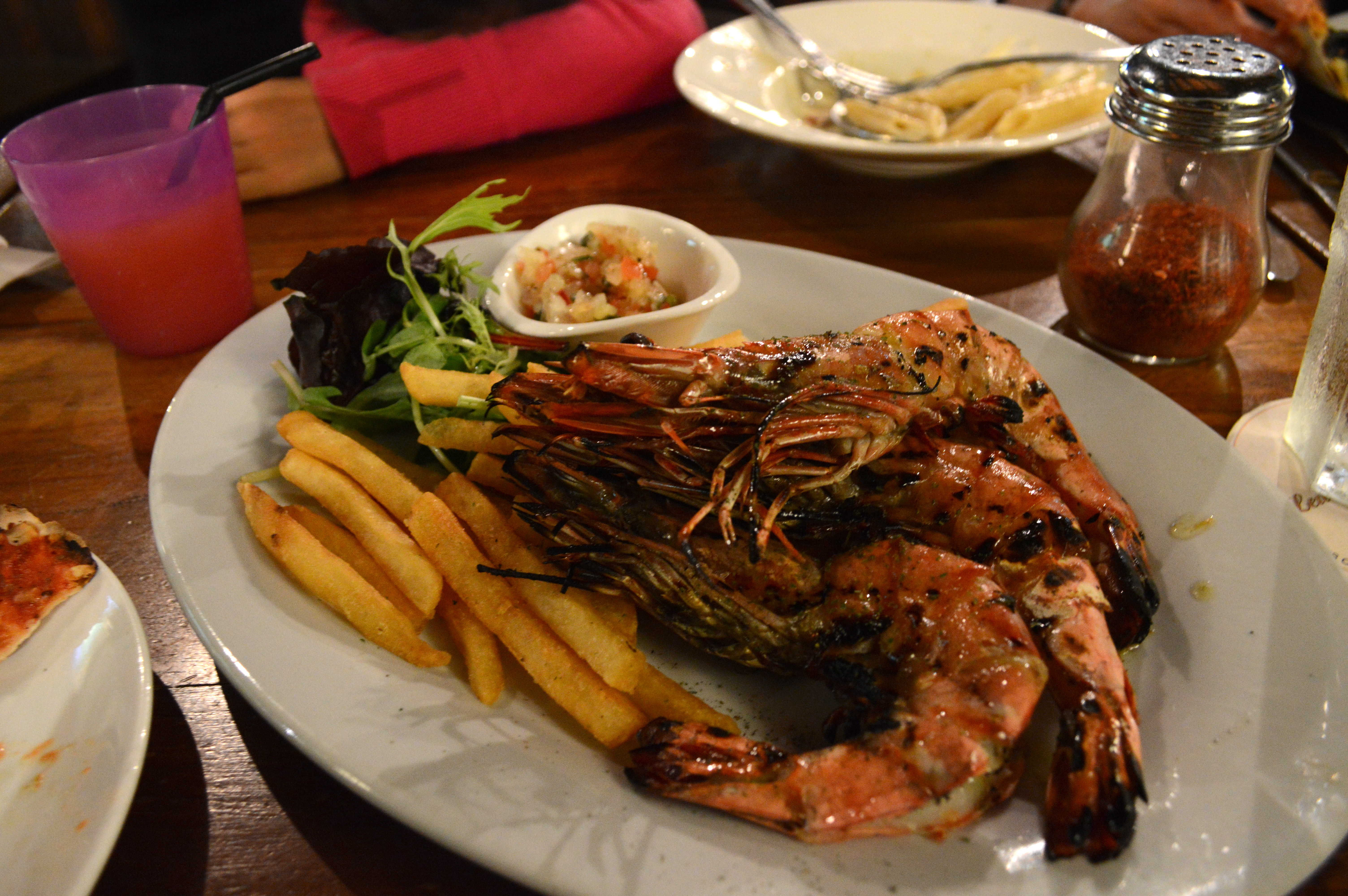 Grilled king prawns with pineapple salsa/ whole sea bass with orange barley risotto/ angus rib-eye (280g)