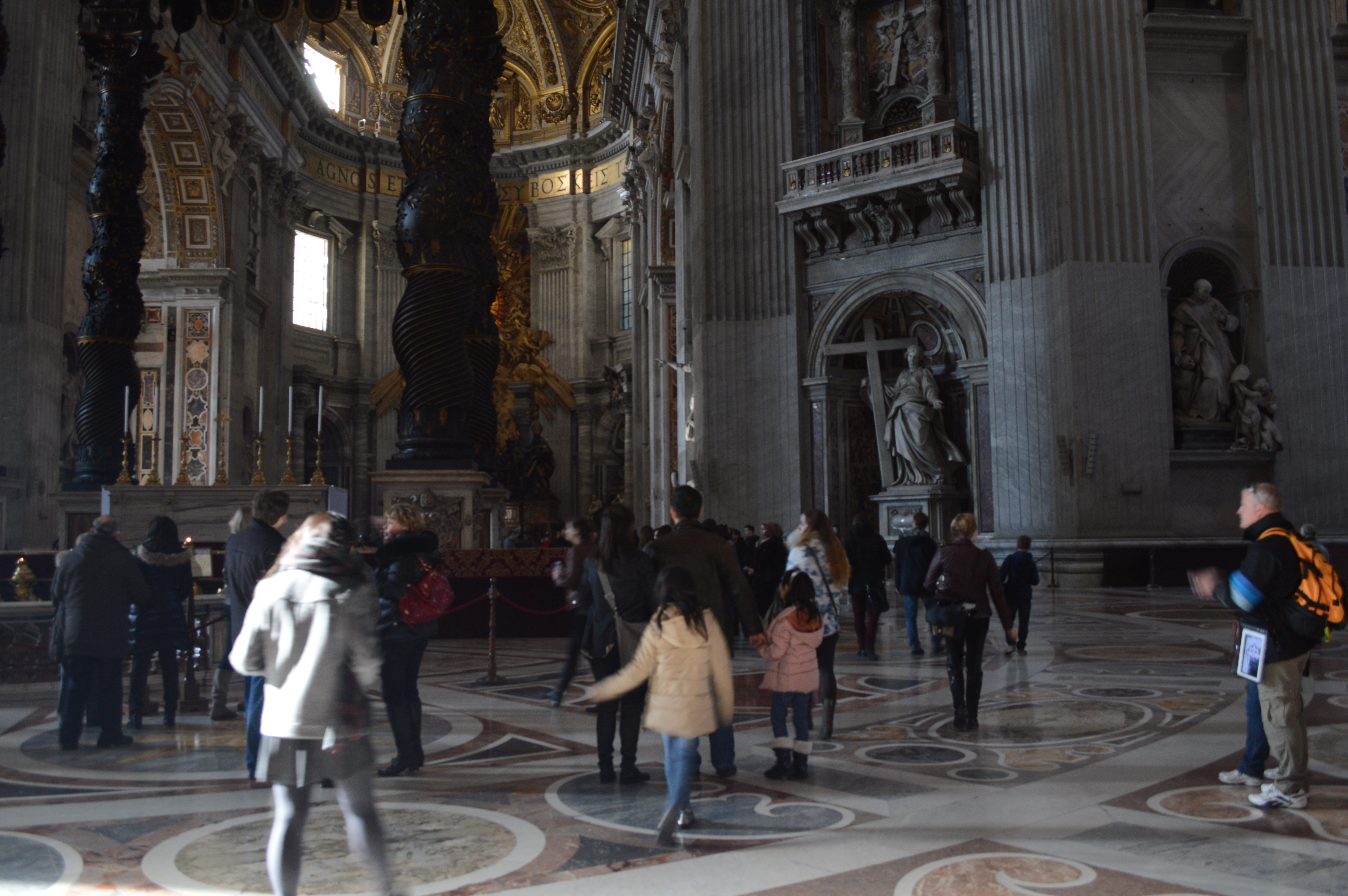 Sometimes I forget how small I am. In the midst of two-metre tall letters, bundled up in winter gear, heart thumping, internally applauding the graciousness of God made real and beautiful in the gold, ornate interior of St. Peter’s Basilica. Slivers of light to greet us, the warmth and holiness of hundreds of years preserved for us to revel in.