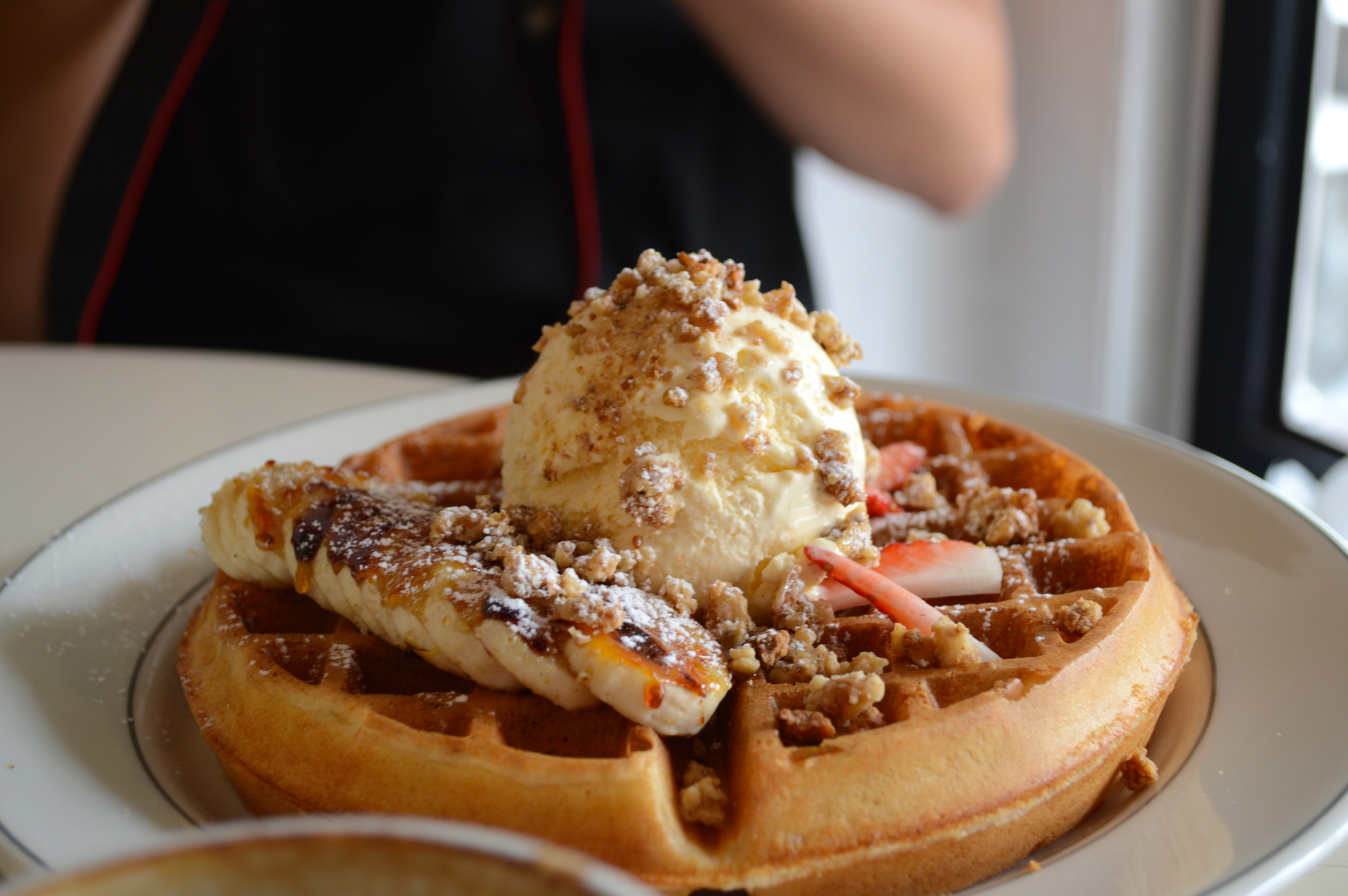 Special of the day: Buttermilk waffles with caramel bananas, walnut crunch and vanilla ice cream, $14.90