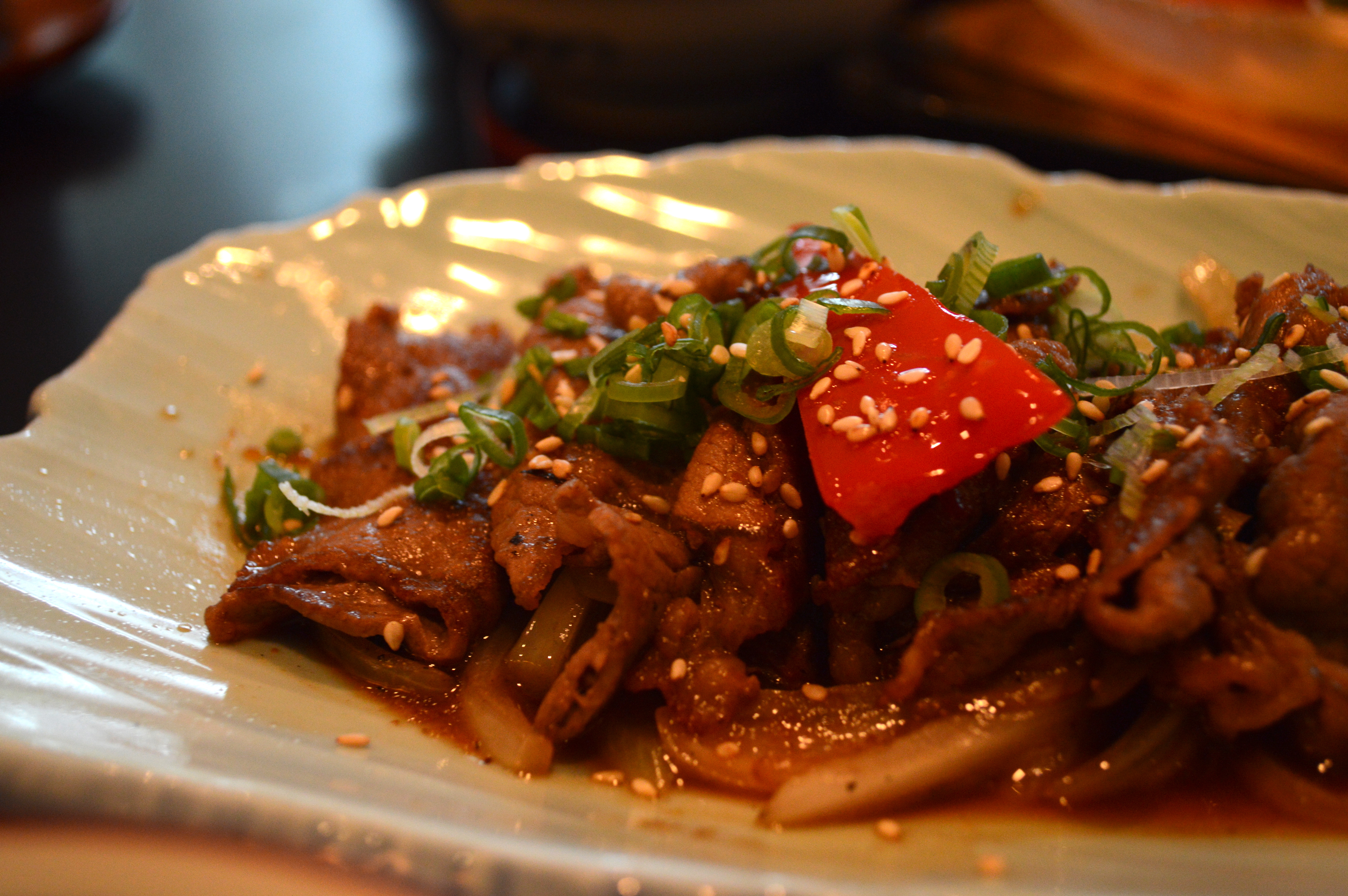 Yes baby. MY set. The beautiful juxtaposition between stealing bits of cold sashimi and the sweet, bold richness of that teriyaki-like onion and soy sauce, drizzled over febrile, firm strands of juicy sirloin. Scarred with ridges and perfectly angled knife marks to enjoy maximum saturation of sauce. Don’t get me started on those onions. They were caramelised to perfection, without yielding all firmness. Just the way I like it. Just between debilitating and robust. Crunch, chew, the earthly splendour of the bulb basking in the heat of your mouth. Coupled with a fat spoon of obese Japanese rice speckles, like three-dimensional bits of snow freckles- moist, plump, as white as ever, it made for the most satisfying bite. The unstimulating but necessary bed of warm rice creating an appealing, slightly sweet canvas for the drunk flavours of the plate. I wouldn’t say it’s the best beef ever, but darn, was it good.