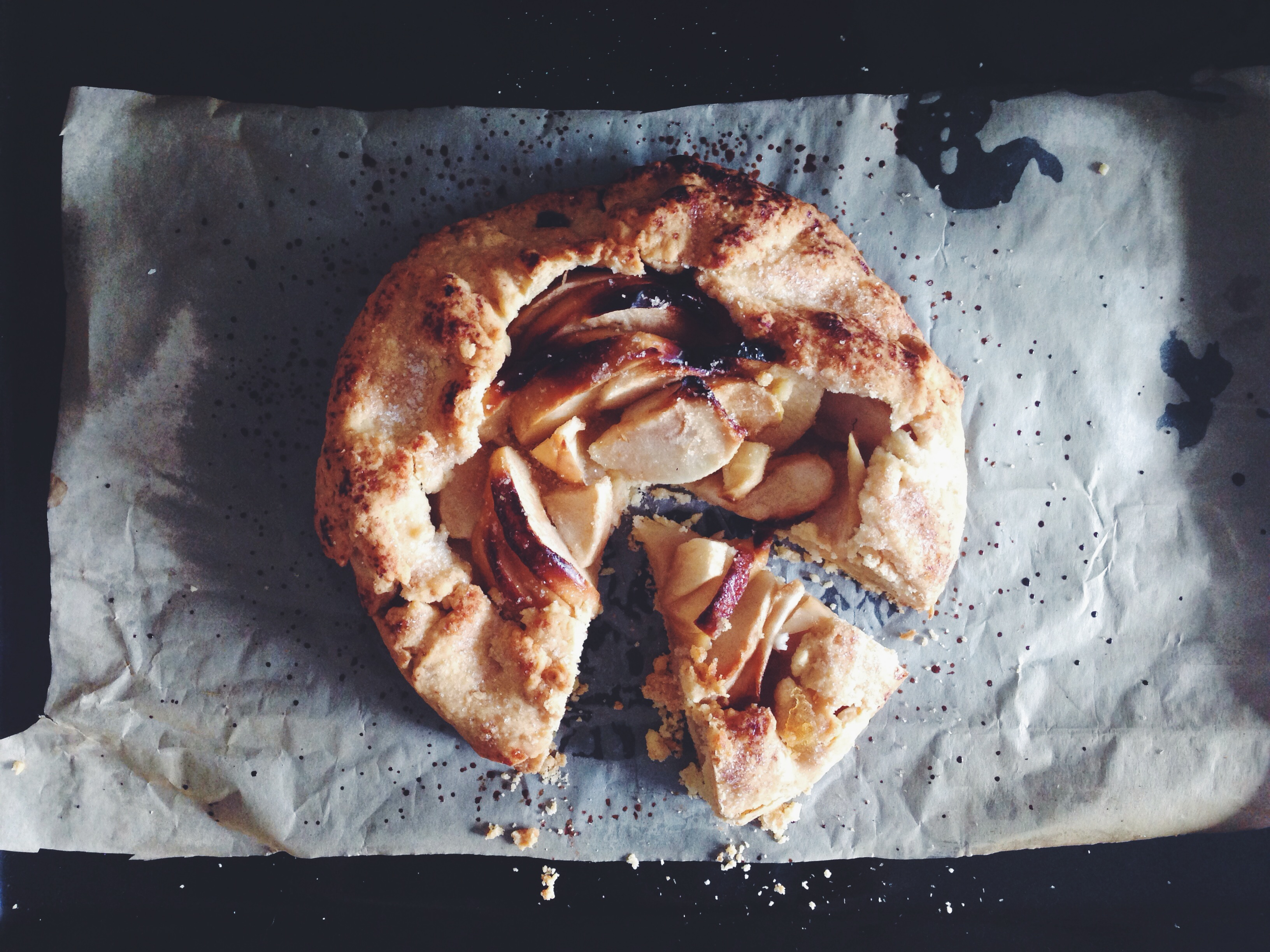 I had been meaning to make an apple galette for quite a while now. I must be this specific– apple galette. Nothing else would have done it for me. Just… Nothing. I had to, and the urge was running wild; coursing hot through my blood. I had looked at quite a few recipes, and surprisingly most required the dough to be set in the fridge for at least an hour or so (understandably), and for the apples to go through a caramelising or some other cook-through method beforehand. Not that I would have minded so terribly… But sadly I am a creature of convenience. Stark laziness, even, sometimes. I’ll be honest. I was really pleased with how this turned out, even after making the radical adaptations. I like those burnt edges. Kill me if you wish. I do. The buttery, caramelised apples with a tender bottom crust go wonderfully with a generous scoop of vanilla ice cream. I paired a slice with some leftover salted caramel sauce, because I didn’t have any ice cream lying around and yes, that was enough to break my heart. The flavours are simple, wonderful, joyful.