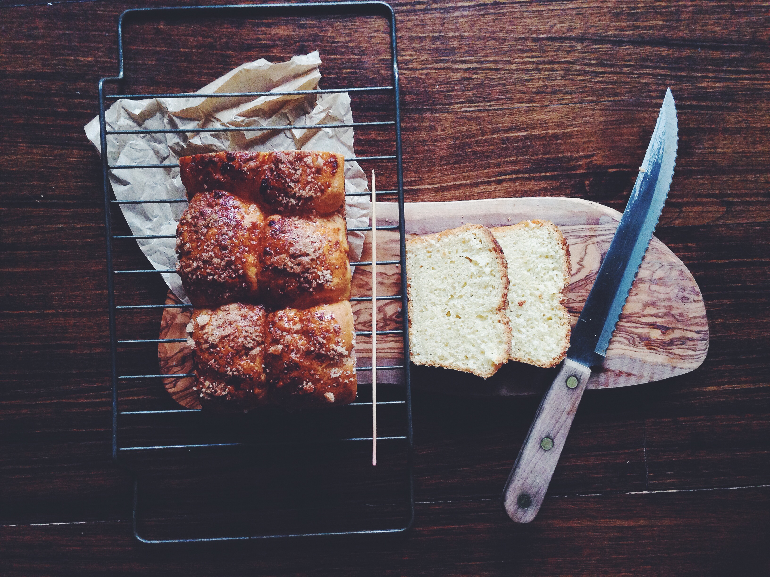 This loaf can be put in a freeze-safe container and left in the freezer for a couple of months. It can be left at room temperature for 1-2 days and nothing more (especially in this bloody hot weather). Whenever you want a nice, slightly sweet treat, just take the loaf out, microwave on high for 20 seconds, cut with a bread knife, then toast or dunk in egg for… Well, does french toast need any explanation anyway?
