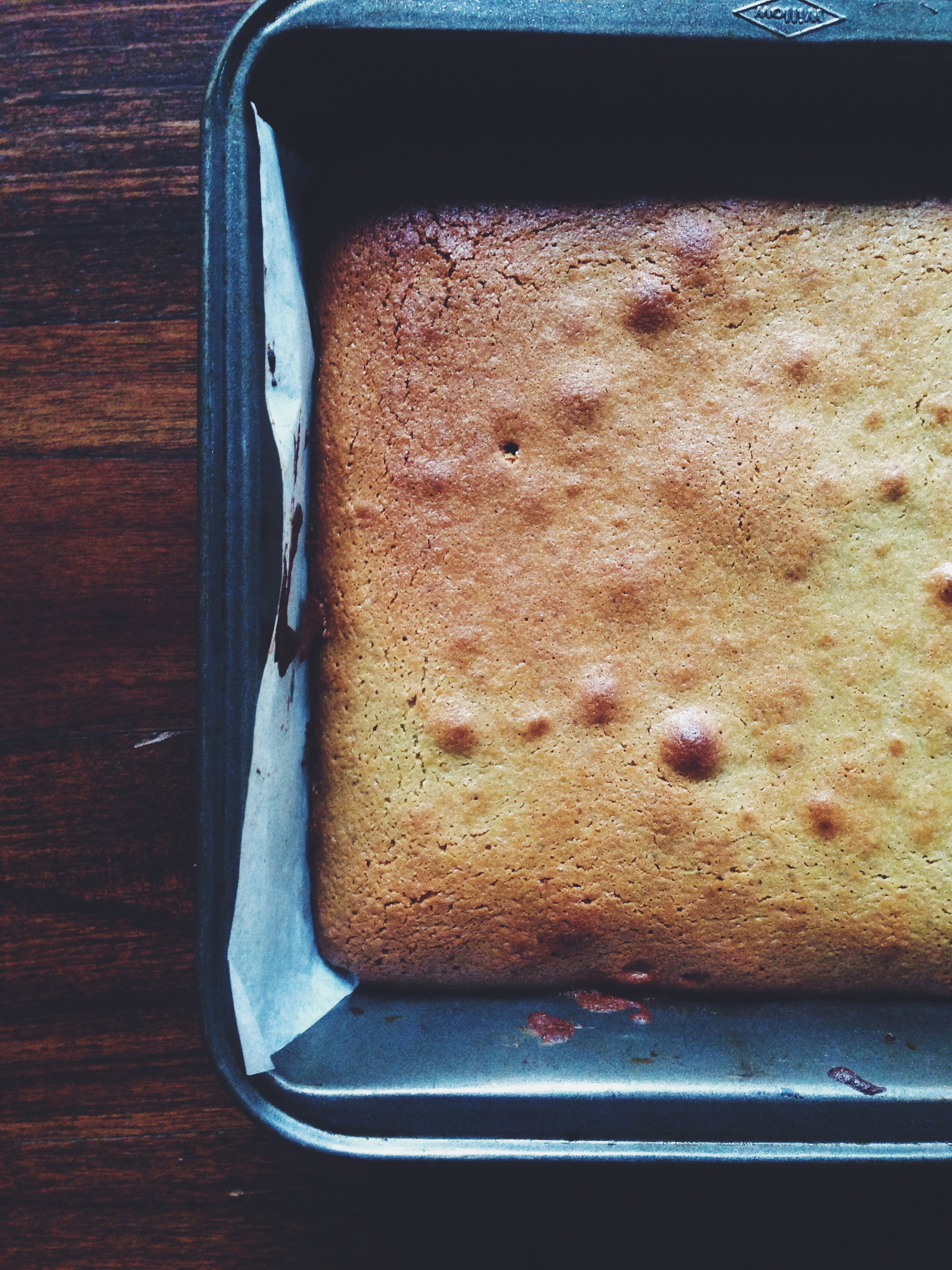 The little air bubbles you see are thanks to a bout of carelessness; I recommend dropping the pan containing the batter before actually baking it, in order to rid your batter of excess air bubbles. Yes, mistakes are abound in this one woman kitchen.