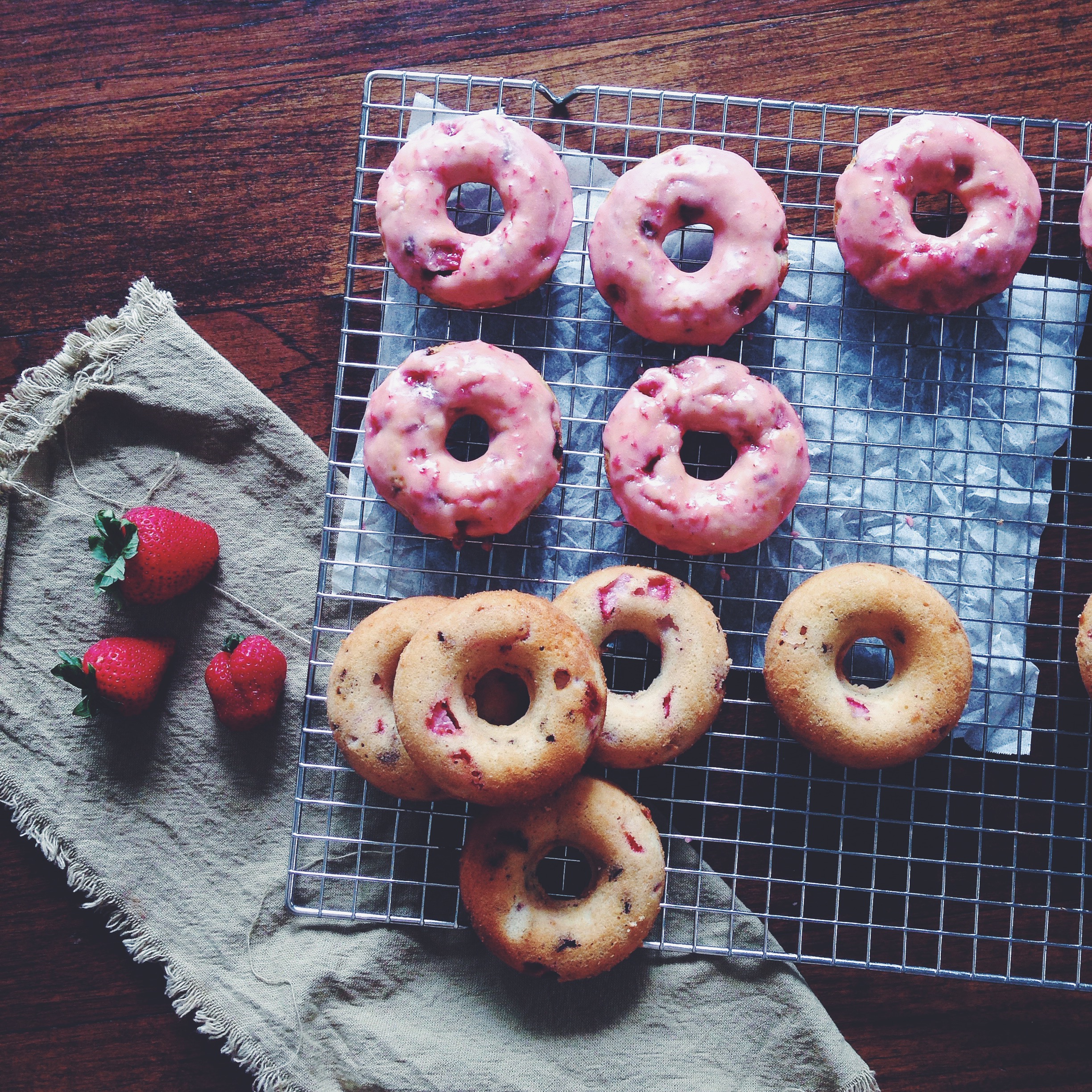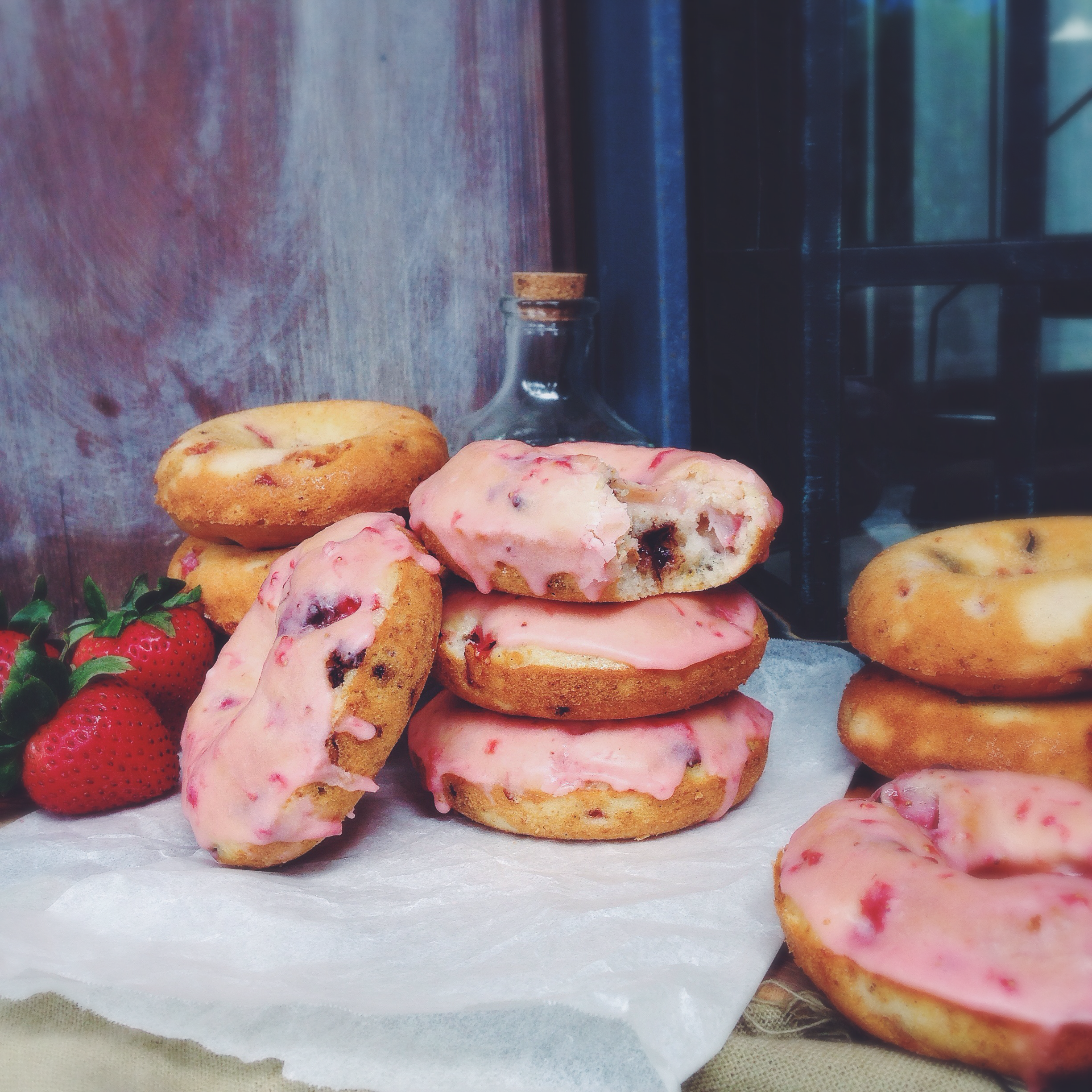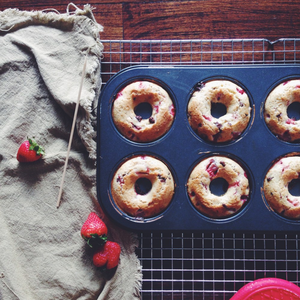 Strawberry Chocolate Vanilla Bean Baked Doughnuts (makes 16)