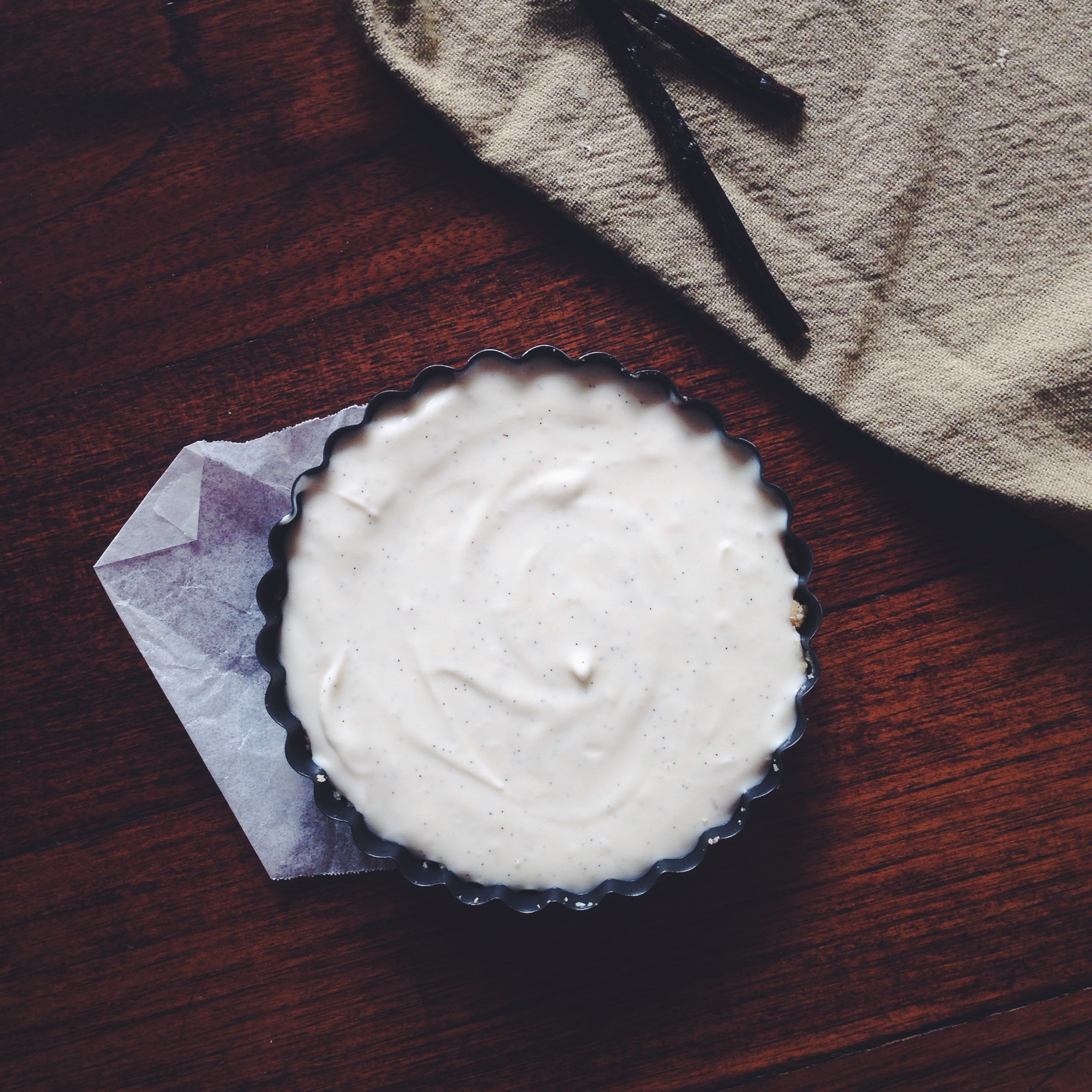 Finally, drizzle some extra coconut cream on the tart, then top with the cooked beans. Et voila! Serve cold from the fridge and enjoy with some green tea or coffee.