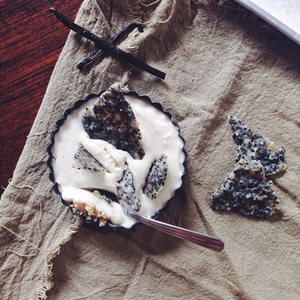 With matcha, coconut, black sesame and adzuki bean, there’s a lot going on, but there’s a lot going on well. Ecstasy possessed me upon my finding these beans in a health shop near where I stay. They take quite a while to cook but the result is so worth it. These rigid, dark beans are harder, darker and smaller than your normal red kidney beans, and add a nice firm texture to any soft, sweet dessert. Dense and more earthy in flavour. In fact, you could throw these guys into your lunchtime salad or pasta and it probably wouldn’t be half bad (here’s to a new idea for tonight). The filling is not too rich, achieved by mixing coconut cream, coconut yoghurt and plant milk in the right ratio. You could do it all just with coconut cream, but that would totally overwhelm the addition of matcha. The light blend ensures all the flavours come through at the same time. As I wrote in my journal that day, it is ‘so sweet, matcha-y and creamy…!!’ Clearly I was too excited to English properly. Also, no baking needed! Just a little fridge hibernation, so make this the night before to enjoy the next day, or in the morning if you’re the sort who has time at home, and enjoy later on.