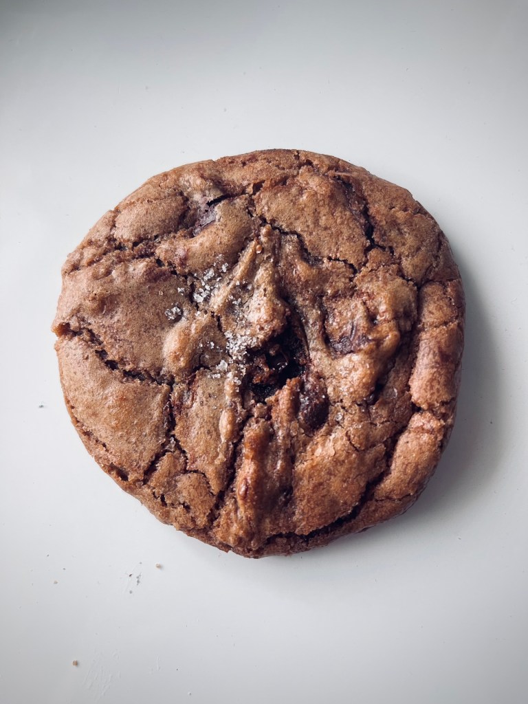 As of right now, these are the only cookies I (and you) need. Butter slowly browned on the stovetop, mixed with brown sugar, egg, and just enough dry ingredients to hold the flavour together. No exceptions for using light brown sugar; you need something dense enough for mild treacly essence but which won’t distract from the brown butter, and the soft sandiness of light brown sugar does the trick.