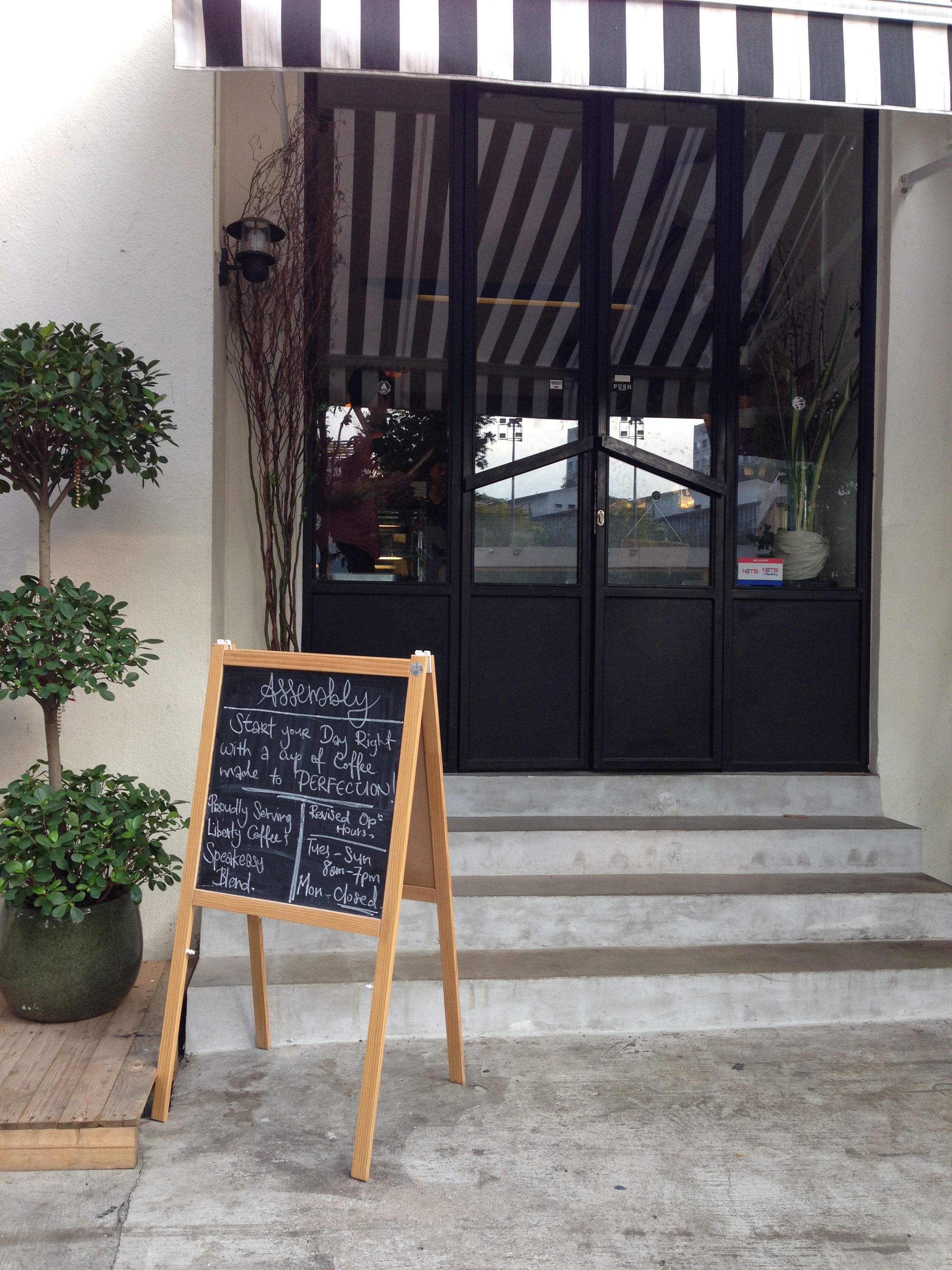 Another post dedication to my new café buddy, Liz! Yes, this one is for you, you pink kitty hoarder. (I know you are, deep deep down). Café visiting (the term hopping is a little oversubscribed now, isn’t it) is an actual addiction, I may embarrassedly admit. See, I would be at school working on my extended essay, but since they didn’t have the chemicals I needed that day for me to continue playing at and experimenting with waxy red lipstick, I jumped at the chance to pop by a new café relatively near where I stay. We squealed like idiots over the mere idea, but I don’t regret any willful squeal. No, I don’t really squeal. But for coffee and salted caramel waffles? Yes, I do squeal. Assembly it was.