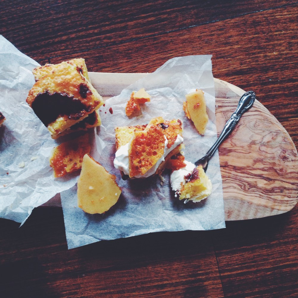 Just now I sat down to a thin sliver of the stuff, and discovered the burst of savoury flavour enveloped in a smooth, sweet body of cake goes perfectly with a simple scoop of plain vanilla ice cream. Family helped mop it all up. Yesterday I made a cake, and it was simple, and so so good. Not much else (aside from a very well-written paper or book or walk) makes me just as happy and satisfied.