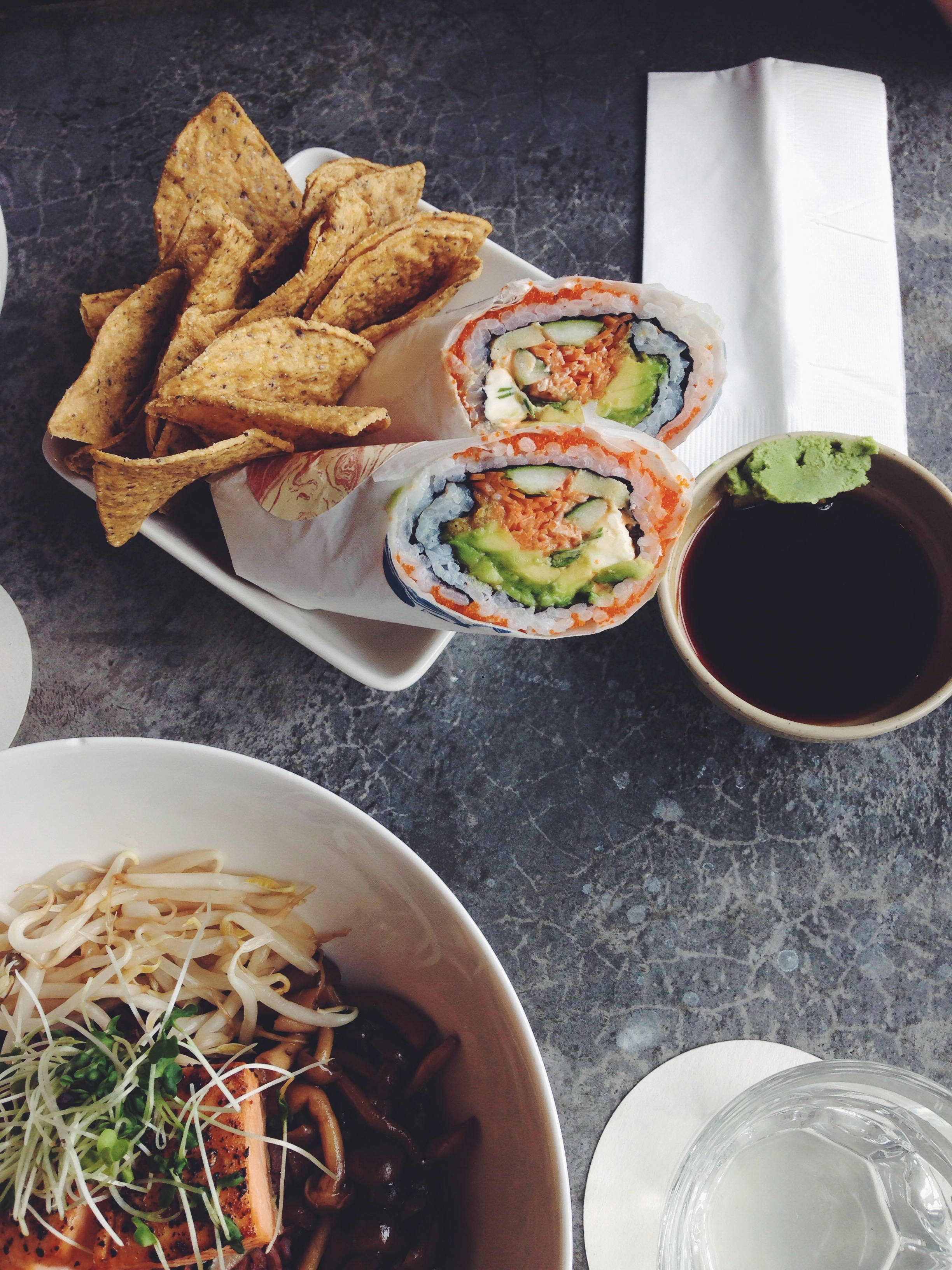 I started my little self-made food sequence with their Aki Ban Cha, a light and fragrant green tea (though the lady who served it didn’t know what it was). They have a selection of three teas on offer, and mine stayed warm and life-giving for the hour I was there. There had to be some sort of meditation in case anything else went awry.