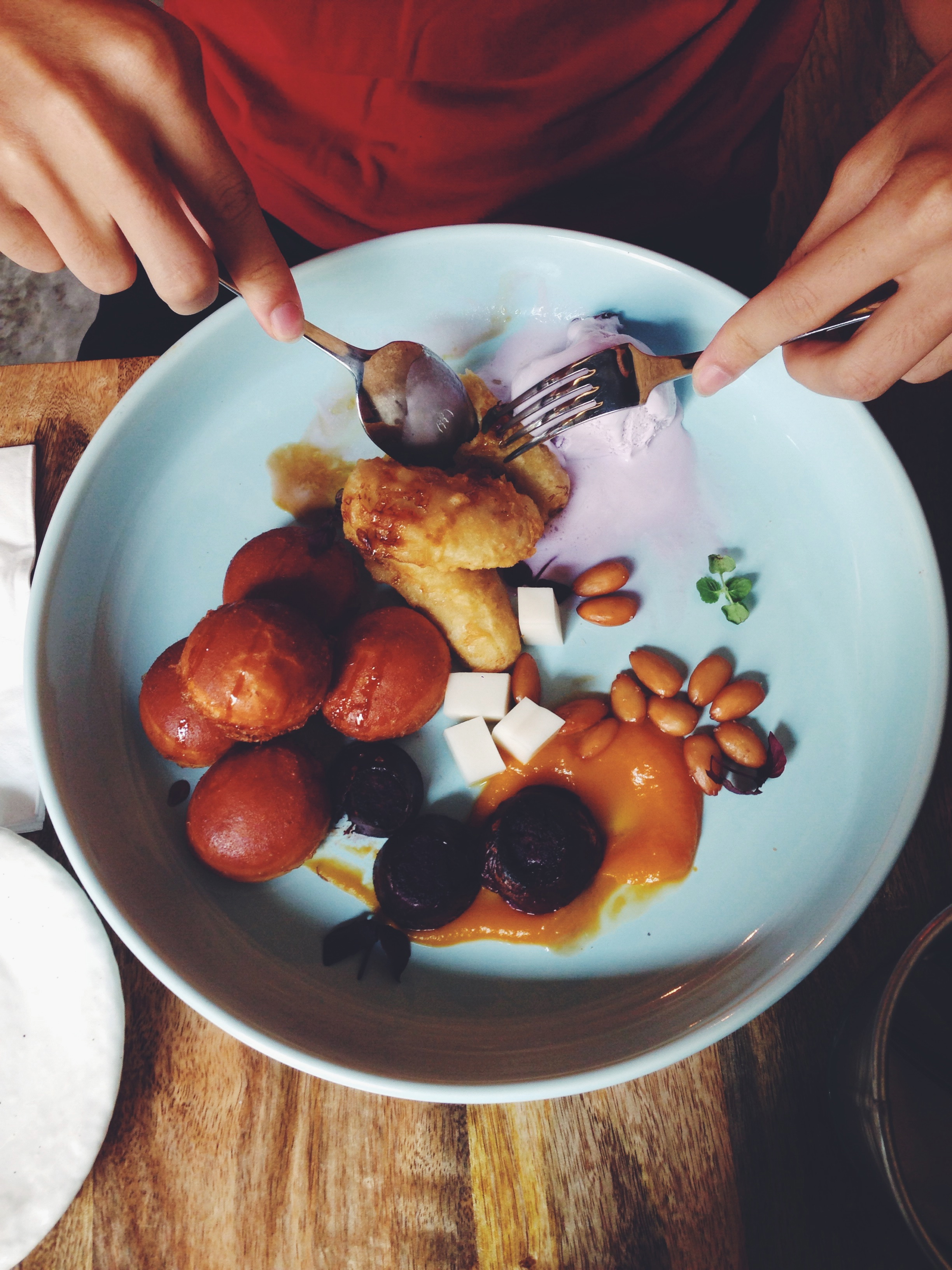 I started my little self-made food sequence with their Aki Ban Cha, a light and fragrant green tea (though the lady who served it didn’t know what it was). They have a selection of three teas on offer, and mine stayed warm and life-giving for the hour I was there. There had to be some sort of meditation in case anything else went awry.