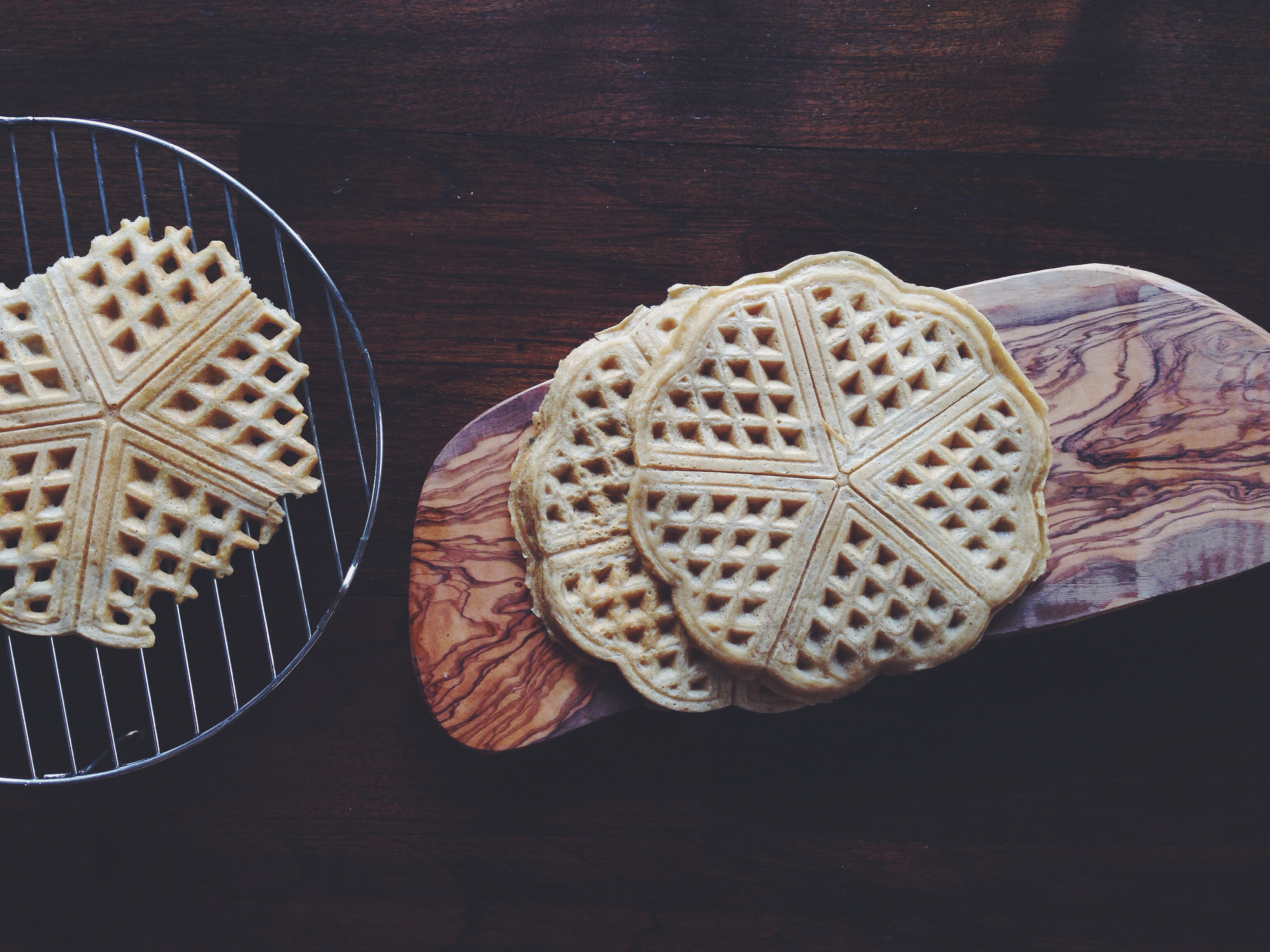 Crispy, chewy black sesame waffles with lemon curd (makes 6 medium, or 5×6-inch waffles)